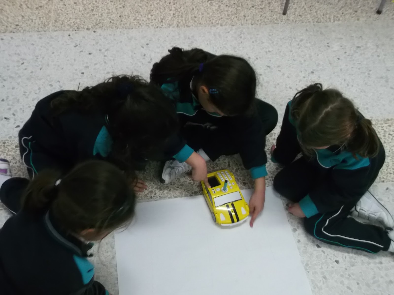 With the bee-bot they could only move in steps of 15cm forward and back, and 90 degrees left or right. But this was appropriate for their level of ability in the earlier grades. Now with the pro-bot they can move to any centimeter or degree they want. It proved to be a challenge but enjoyed controlling it.